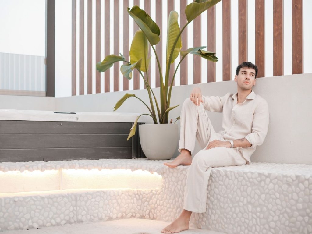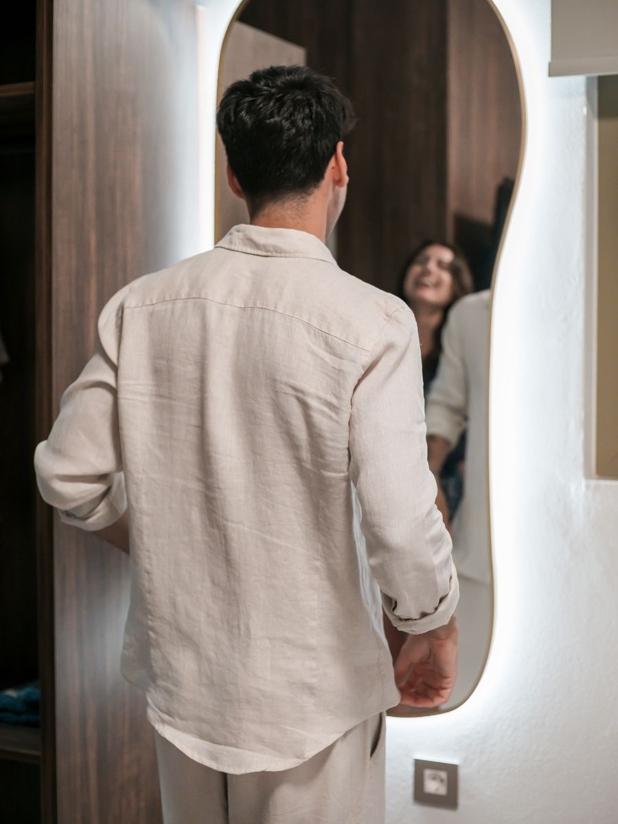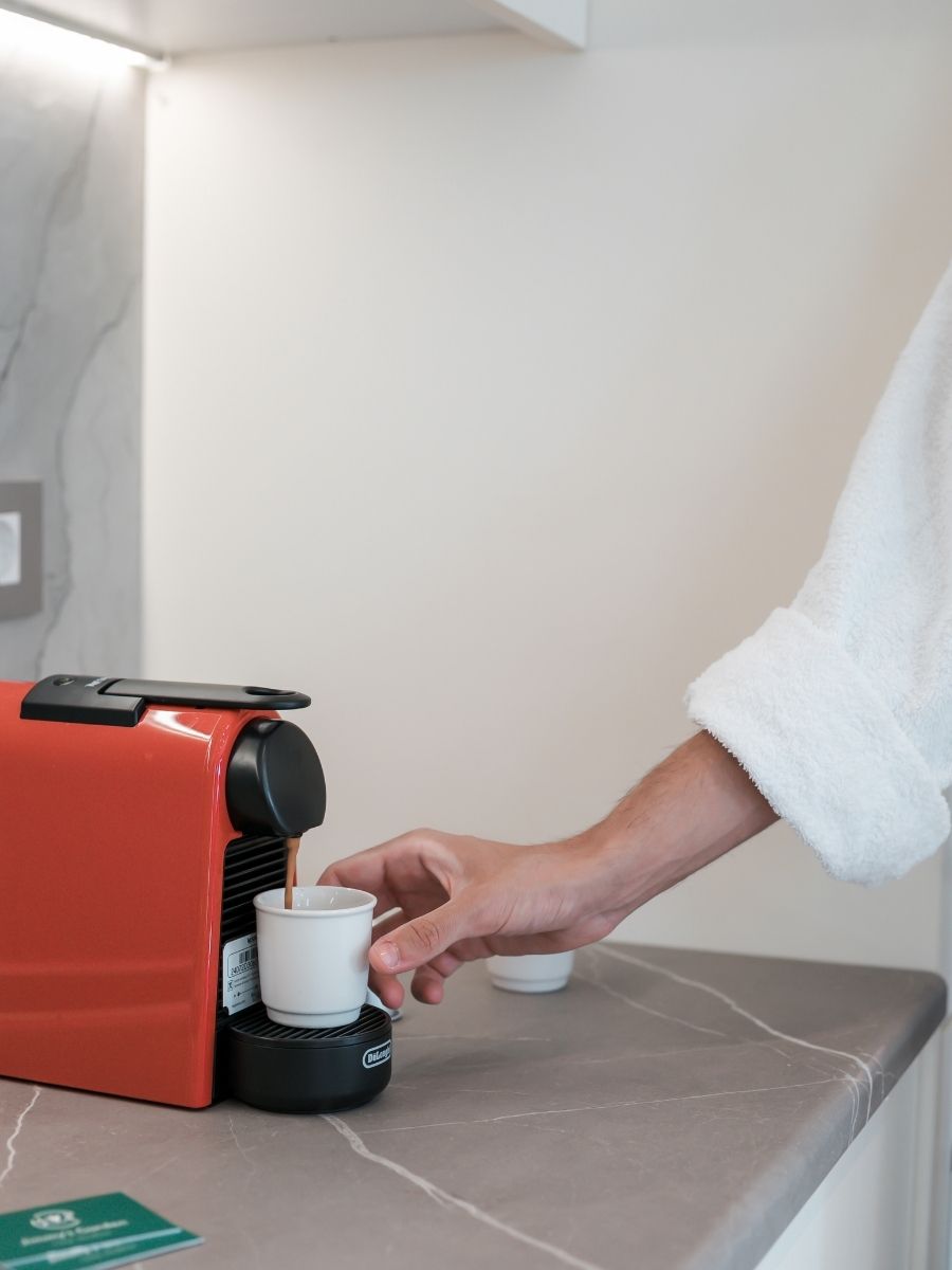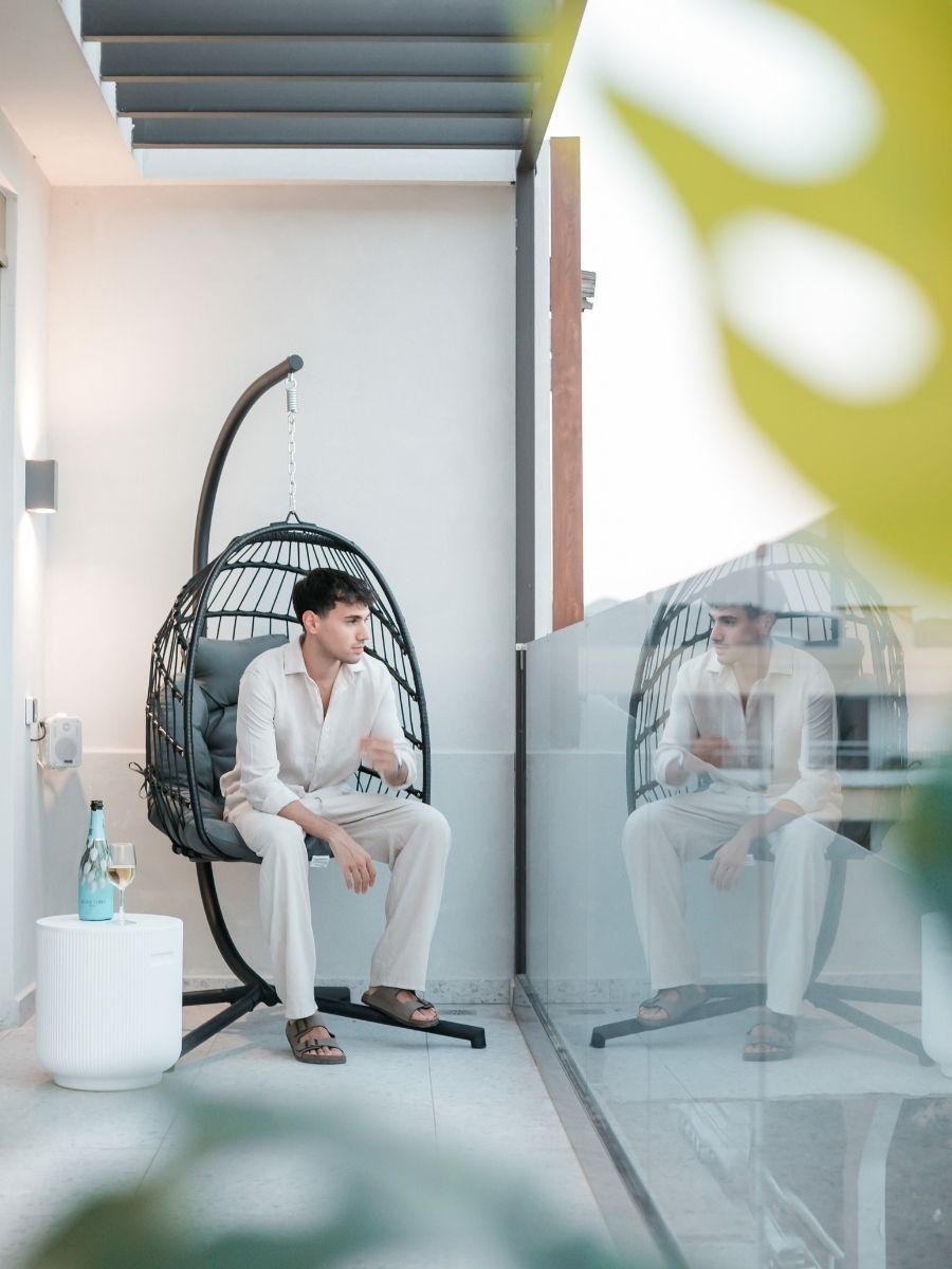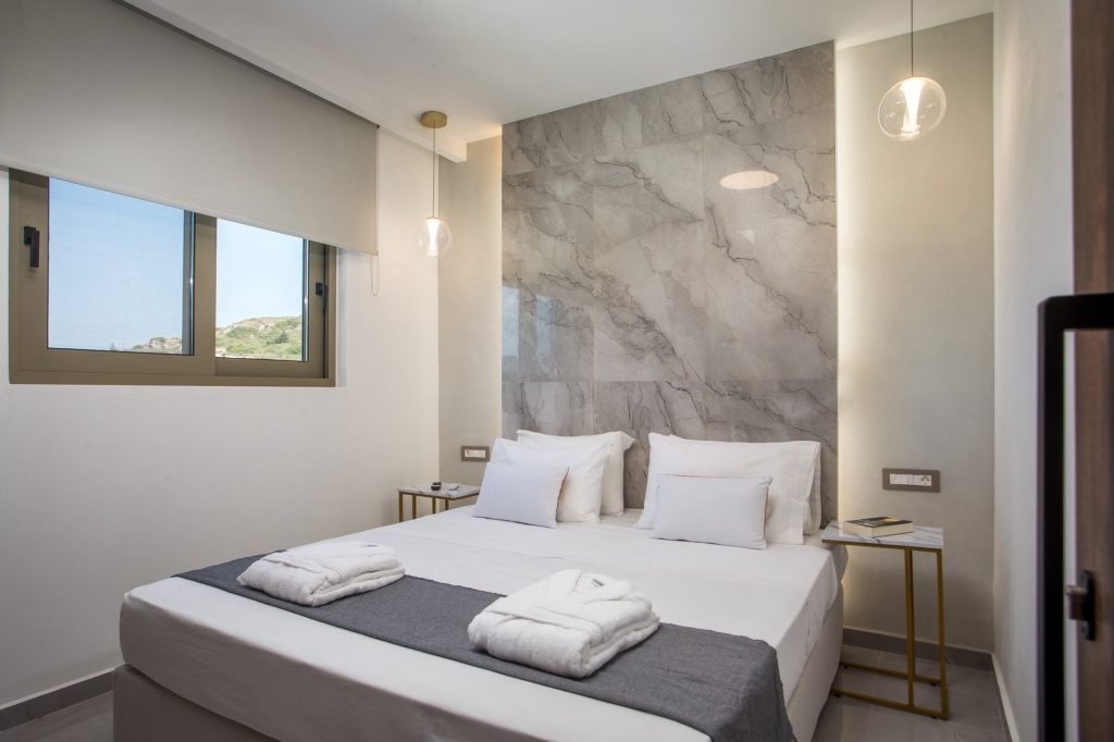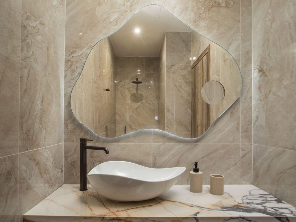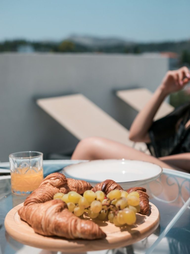 Our elegant suite offers two spacious bedrooms, a fully equipped kitchen with modern appliances, and a stylish bathroom. The highlight is the expansive private terrace, featuring a hydromassage pool and comfortable sun loungers. Enjoy all essential home comforts, including a washing machine and hairdryers, ensuring convenience and relaxation throughout your stay.